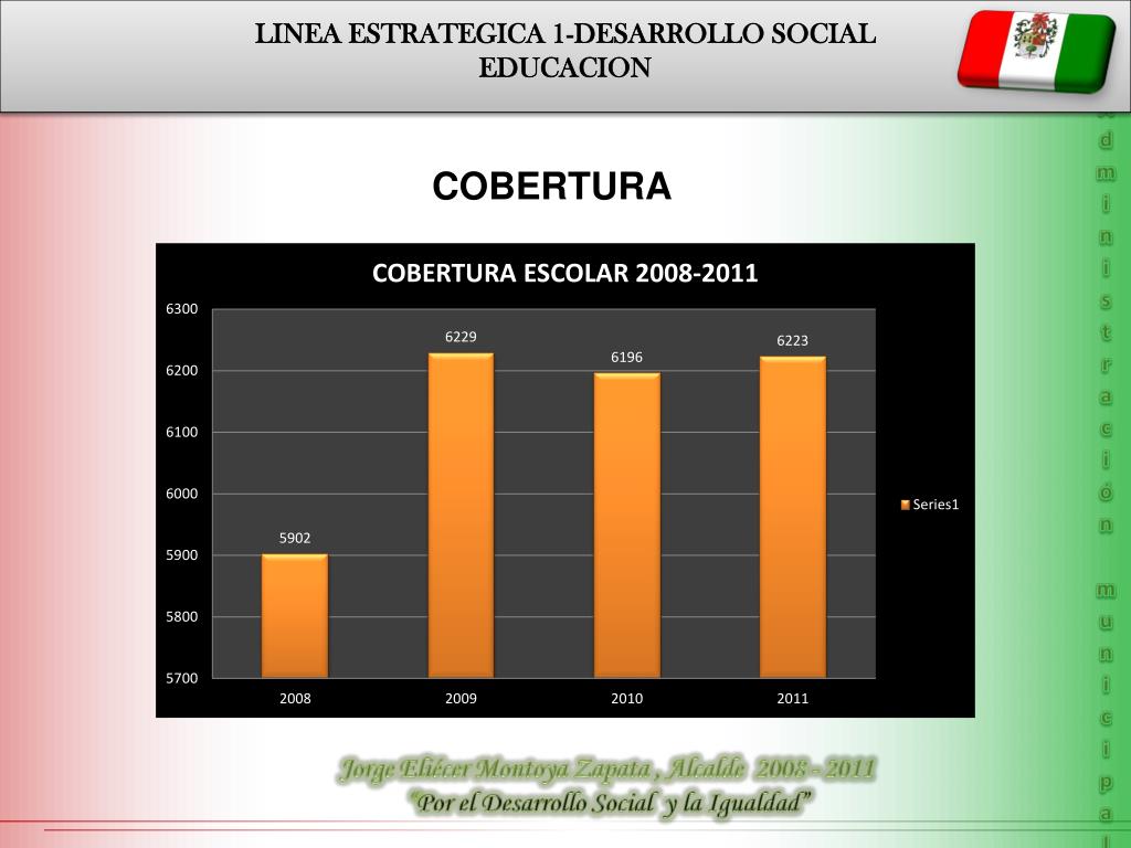 LINEA ESTRATEGICA 1-DESARROLLO SOCIAL EDUCACION Administración municipal COBERTURA Jorge Eliécer Montoya Zapata , Alcalde 2008 - 2011 “Por el Desarrollo Social y la Igualdad”