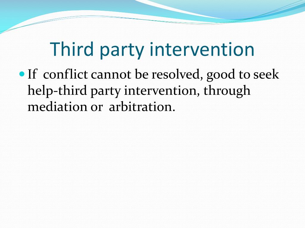 Third party intervention • If conflict cannot be resolved, good to seek help-third party intervention, through mediation or arbitration.