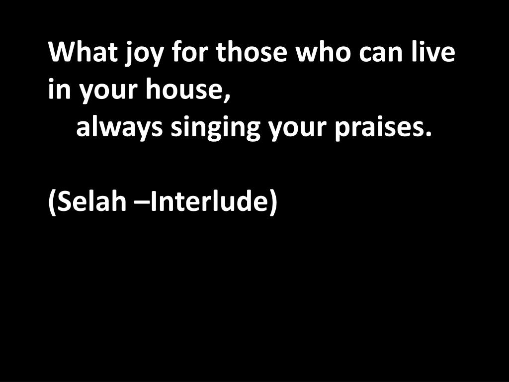 What joy for those who can live in your house, always singing your praises. (Selah –Interlude)