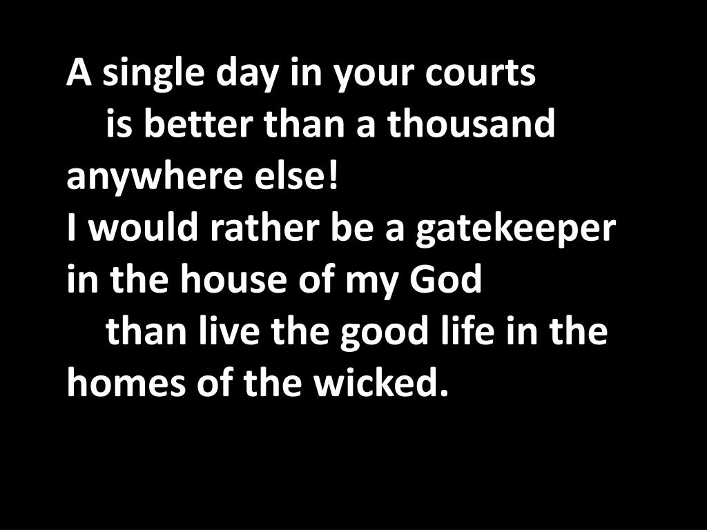 A single day in your courts is better than a thousand anywhere else!I would rather be a gatekeeper in the house of my God than live the good life in the homes of the wicked.