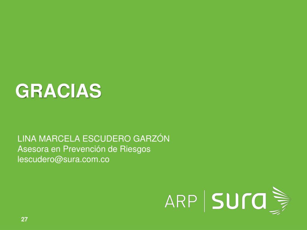 GRACIAS LINA MARCELA ESCUDERO GARZÓN Asesora en Prevención de Riesgos lescudero@sura.com.co