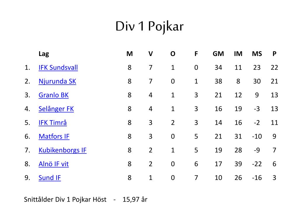 Snittålder div 1 höst • Pojkar 15,96 år • Flickor 14,75 år