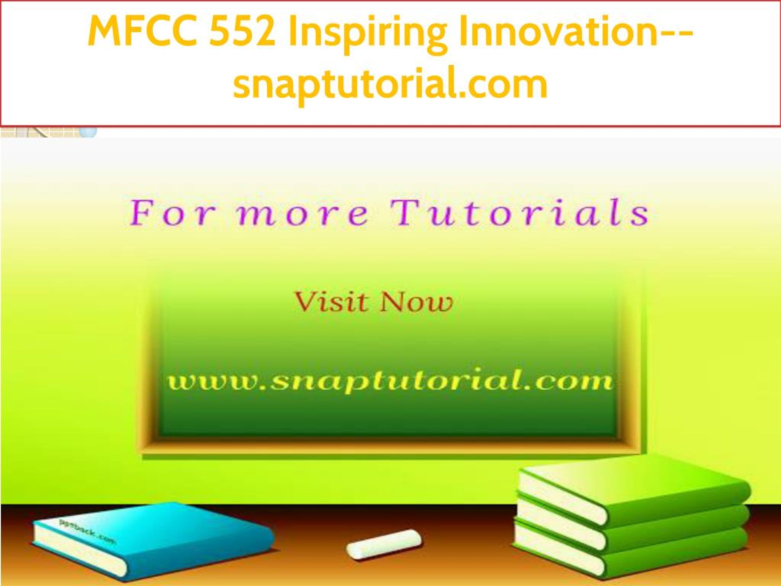 MFCC 552 Inspiring Innovation--snaptutorial.com MFCC 552 Week 8 Learning Team Assignment Emerging Issues Presentation For more classes visit www.snaptutorial.com Select a current or emerging ethics issue in the field of marriage and family therapy. Topics can include, but are not limited to, the following: