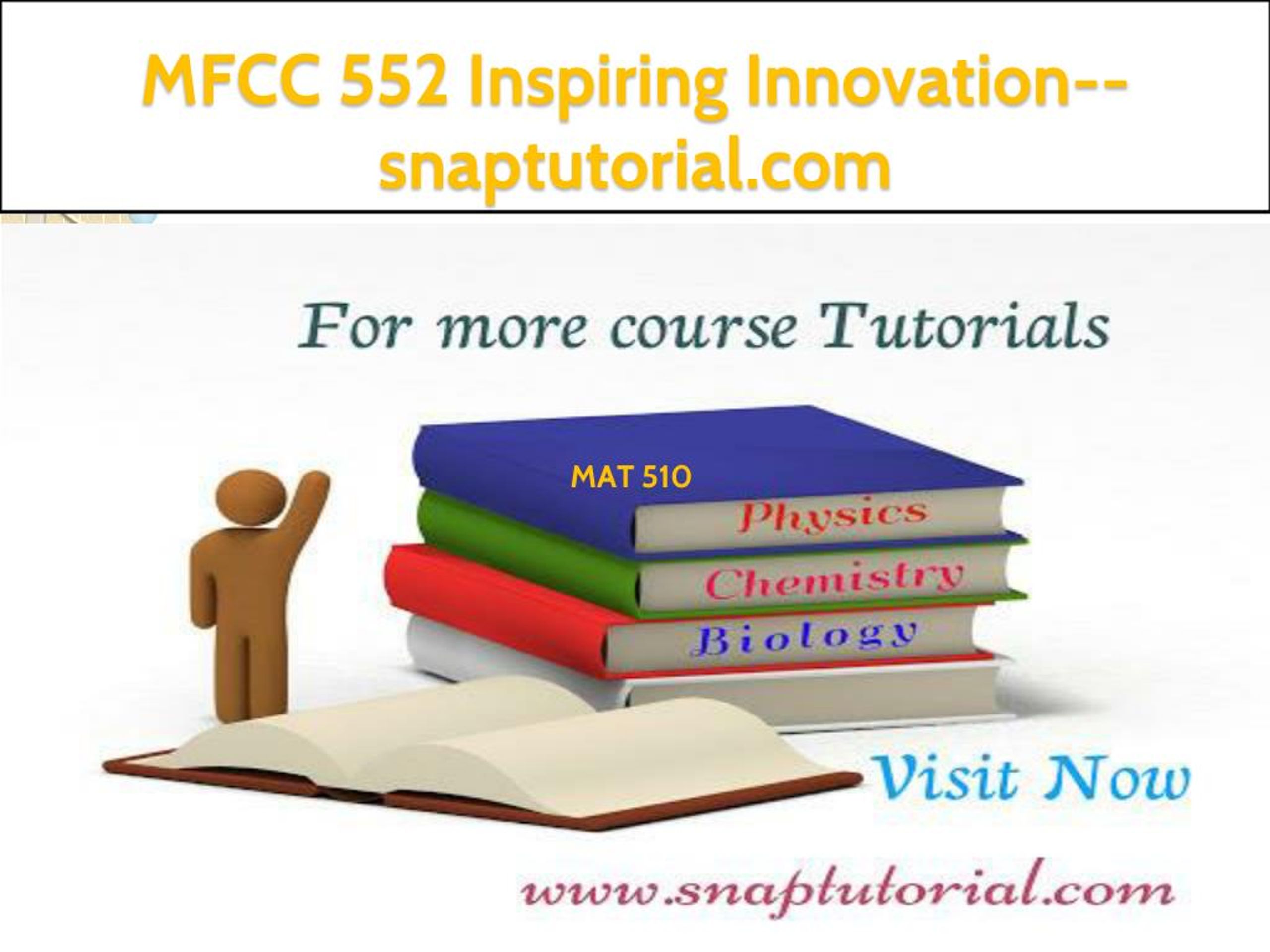 MFCC 552 Inspiring Innovation--snaptutorial.com MFCC 552 Week 8 Learning Team Assignment Emerging Issues Presentation For more classes visit www.snaptutorial.com Select a current or emerging ethics issue in the field of marriage and family therapy. Topics can include, but are not limited to, the following: