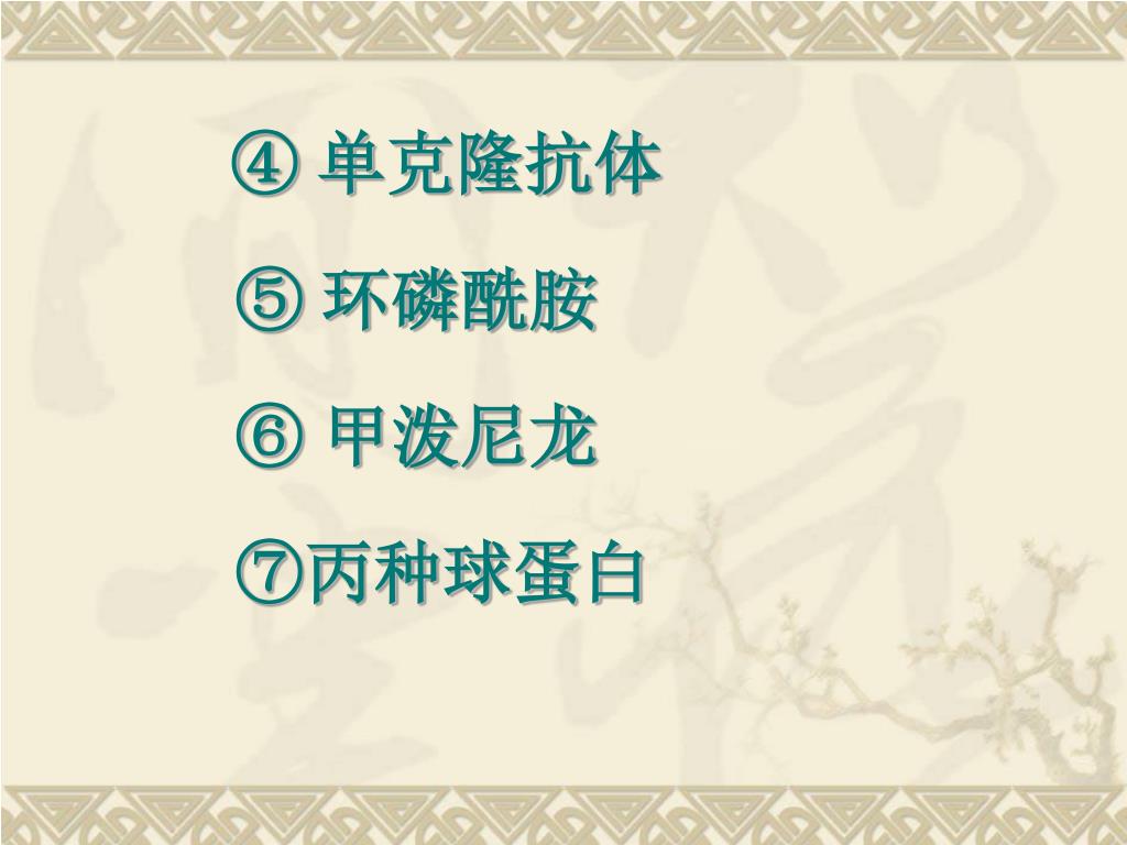 ④ 单克隆抗体 ⑤ 环磷酰胺 ⑥ 甲泼尼龙 ⑦丙种球蛋白