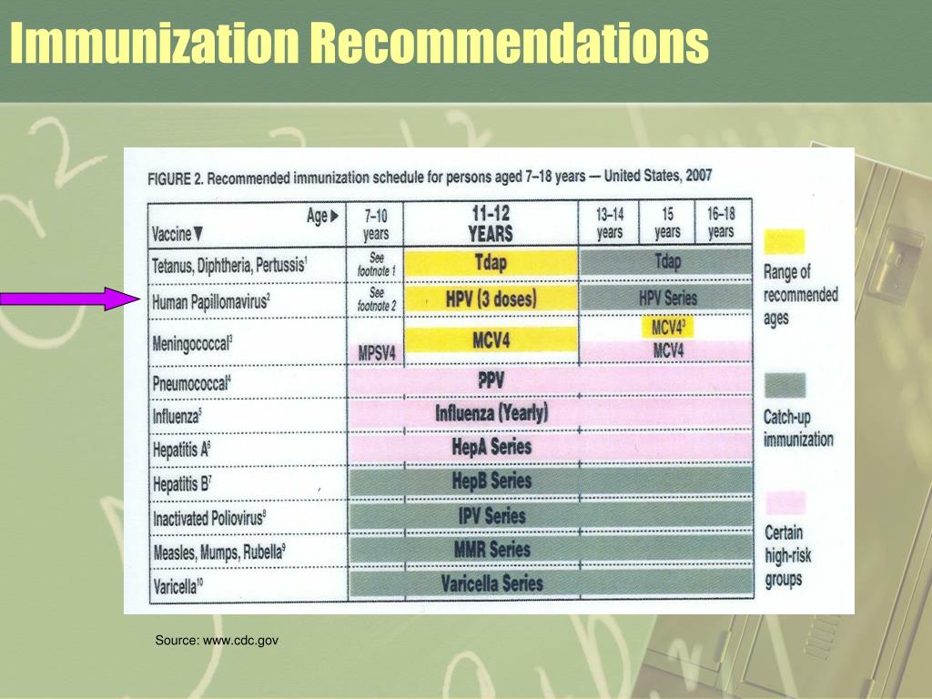 Immunization Recommendations Source: www.cdc.gov