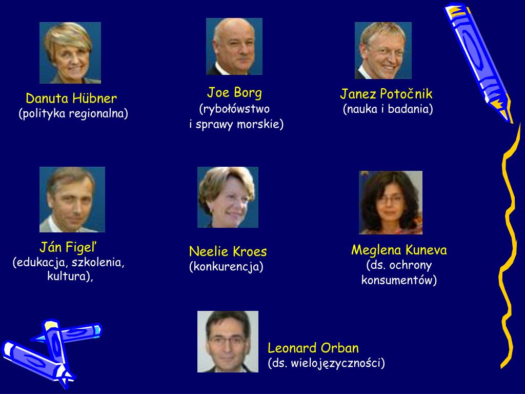 Joe Borg (rybołówstwo i sprawy morskie) Janez Potočnik (nauka i badania) Danuta Hübner (polityka regionalna) Ján Figeľ (edukacja, szkolenia, kultura), Meglena Kuneva (ds. ochrony konsumentów) Neelie Kroes (konkurencja) Leonard Orban (ds. wielojęzyczności)