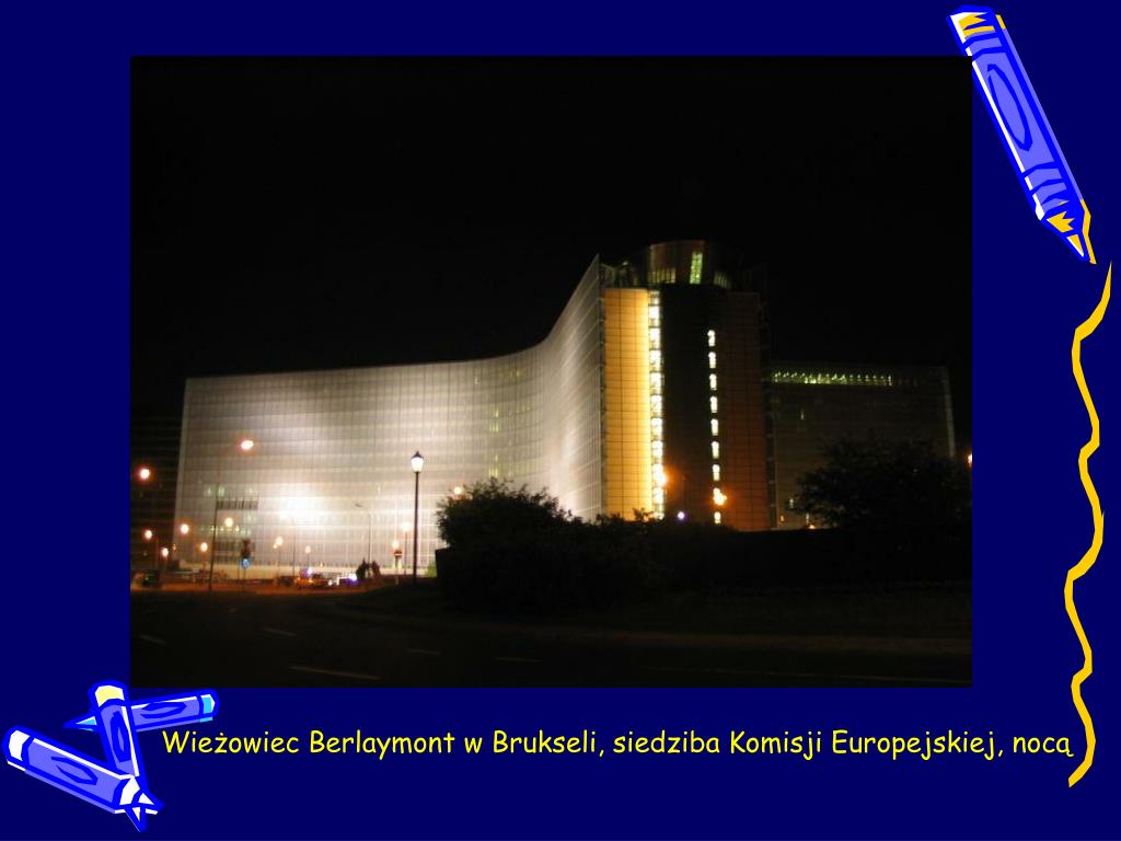 Wieżowiec Berlaymont w Brukseli, siedziba Komisji Europejskiej, nocą