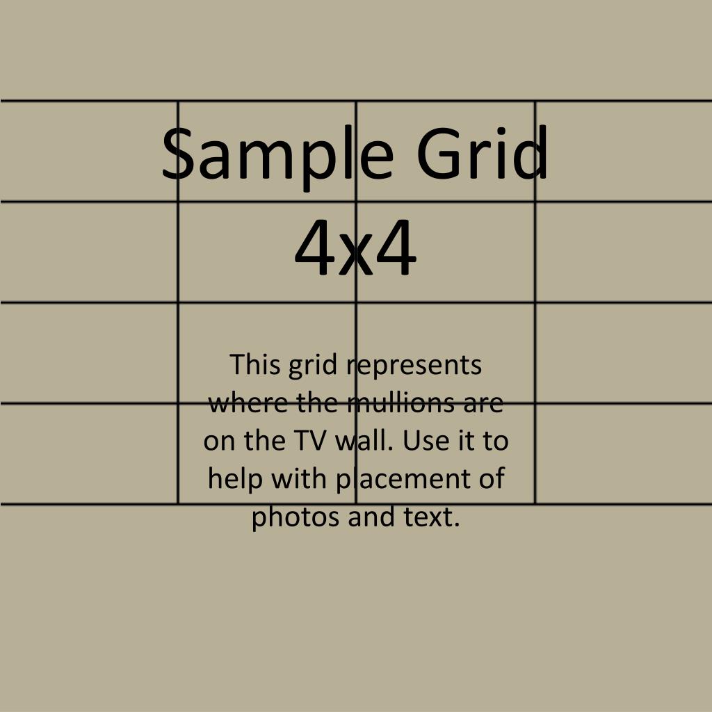 Sample Grid 4x4 This grid represents where the mullions are on the TV wall. Use it to help with placement of photos and text.