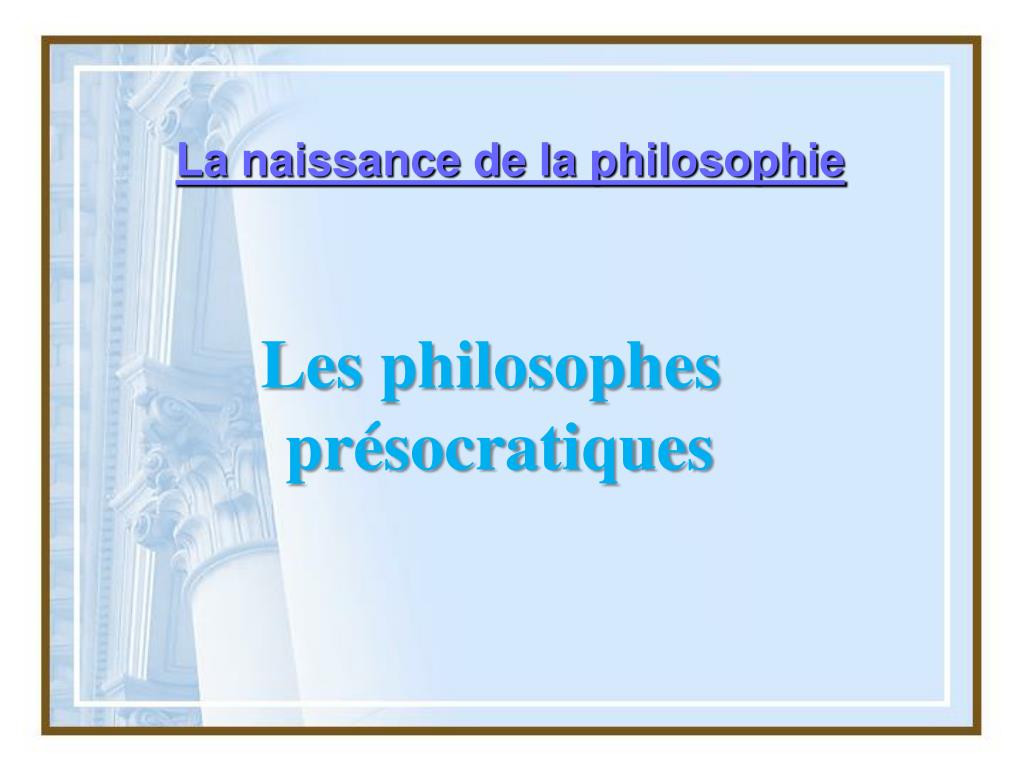 La naissance de la philosophie Les philosophes présocratiques