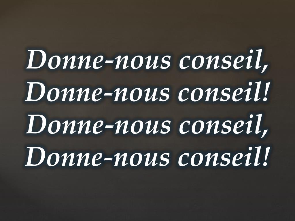 Donne-nous conseil, Donne-nous conseil! Donne-nous conseil, Donne-nous conseil!