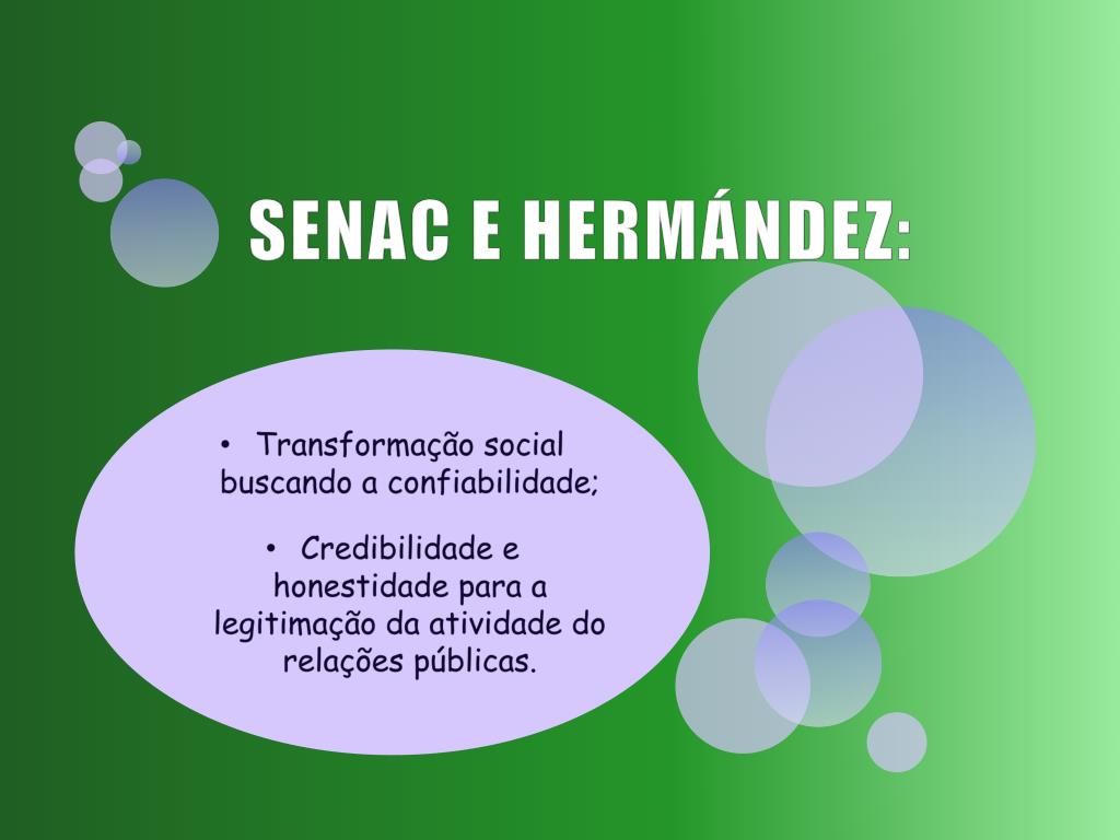 SENAC E HERMÁNDEZ: Transformação social buscando a confiabilidade; Credibilidade e honestidade para a legitimação da atividade do relações públicas.