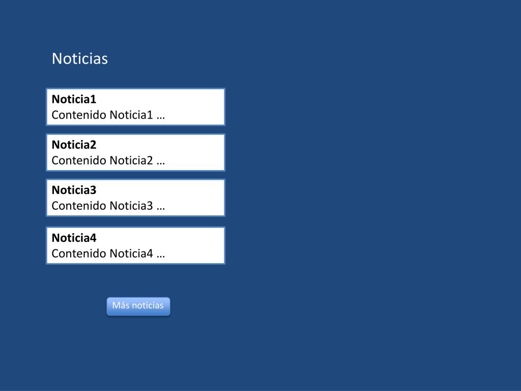 Noticias Noticia1 Contenido Noticia1 … Noticia2 Contenido Noticia2 … Noticia3 Contenido Noticia3 … Noticia4 Contenido Noticia4 … Más noticias