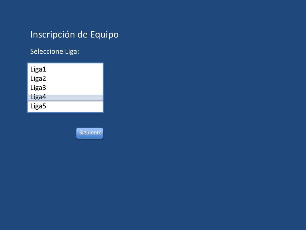 Inscripción de Equipo Seleccione Liga: Liga1 Liga2 Liga3 Liga4 Liga5 Siguiente