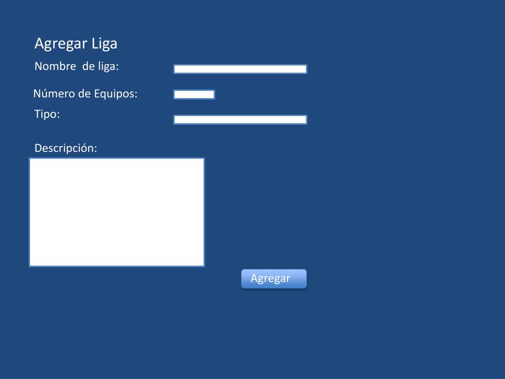 Agregar Liga Nombre de liga: Número de Equipos: Tipo: Descripción: Agregar