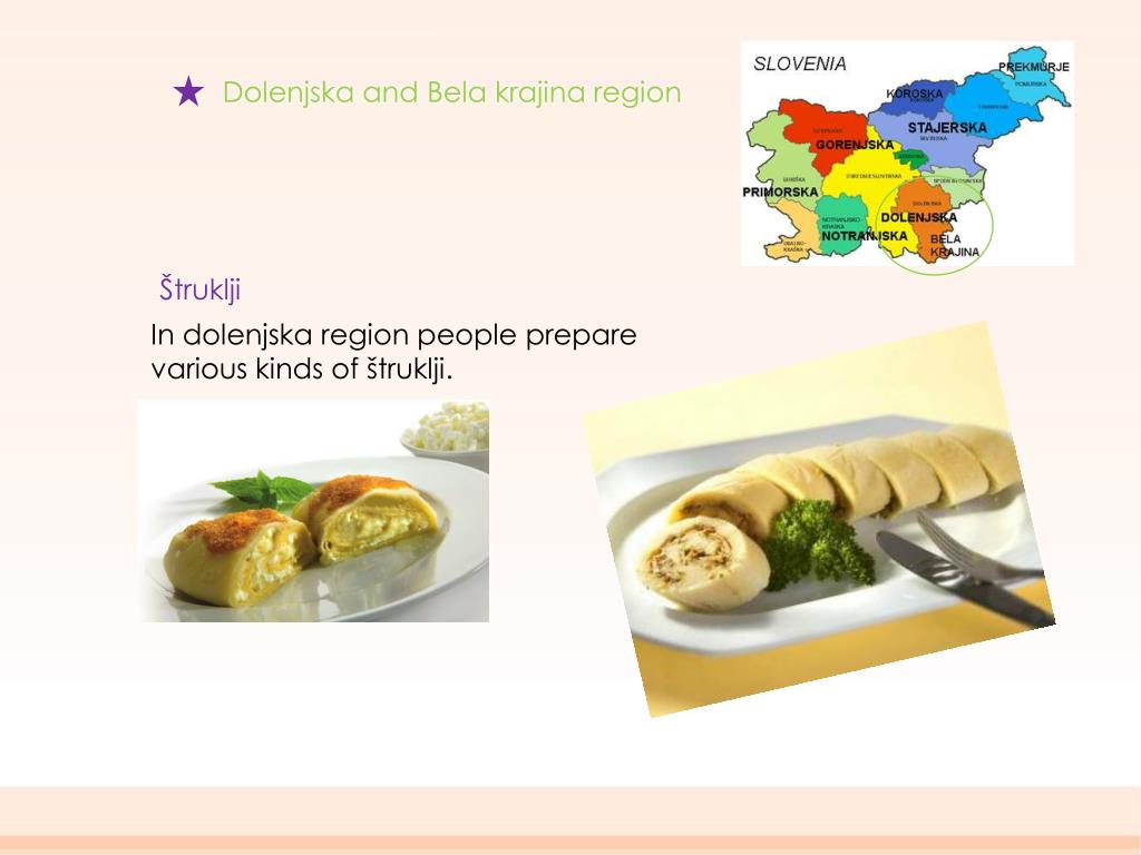 Dolenjska and Bela krajina region Štruklji In dolenjska regionpeopleprepare various kinds of štruklji.