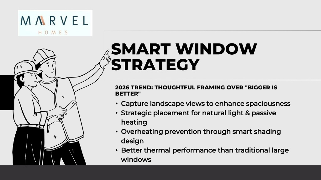 SMART WINDOW STRATEGY 2026 TREND: THOUGHTFUL FRAMING OVER "BIGGER IS BETTER" • Capture landscape views to enhance spaciousness • Strategic placement for natural light & passive heating • Overheating prevention through smart shading design • Better thermal performance than traditional large windows