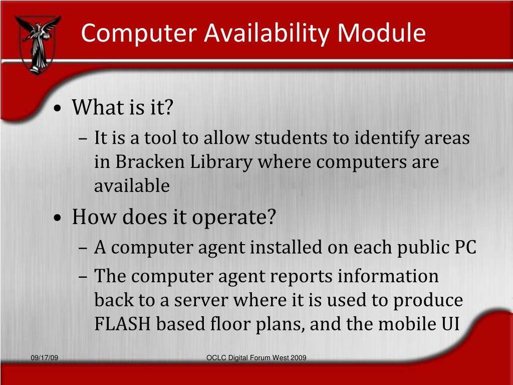Computer Availability Module OCLC Digital Forum West 2009