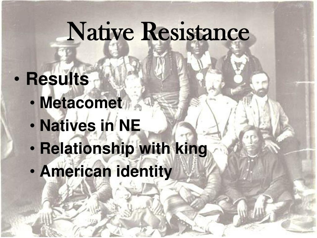 Native Resistance • Results • Metacomet • Natives in NE • Relationship with king • American identity