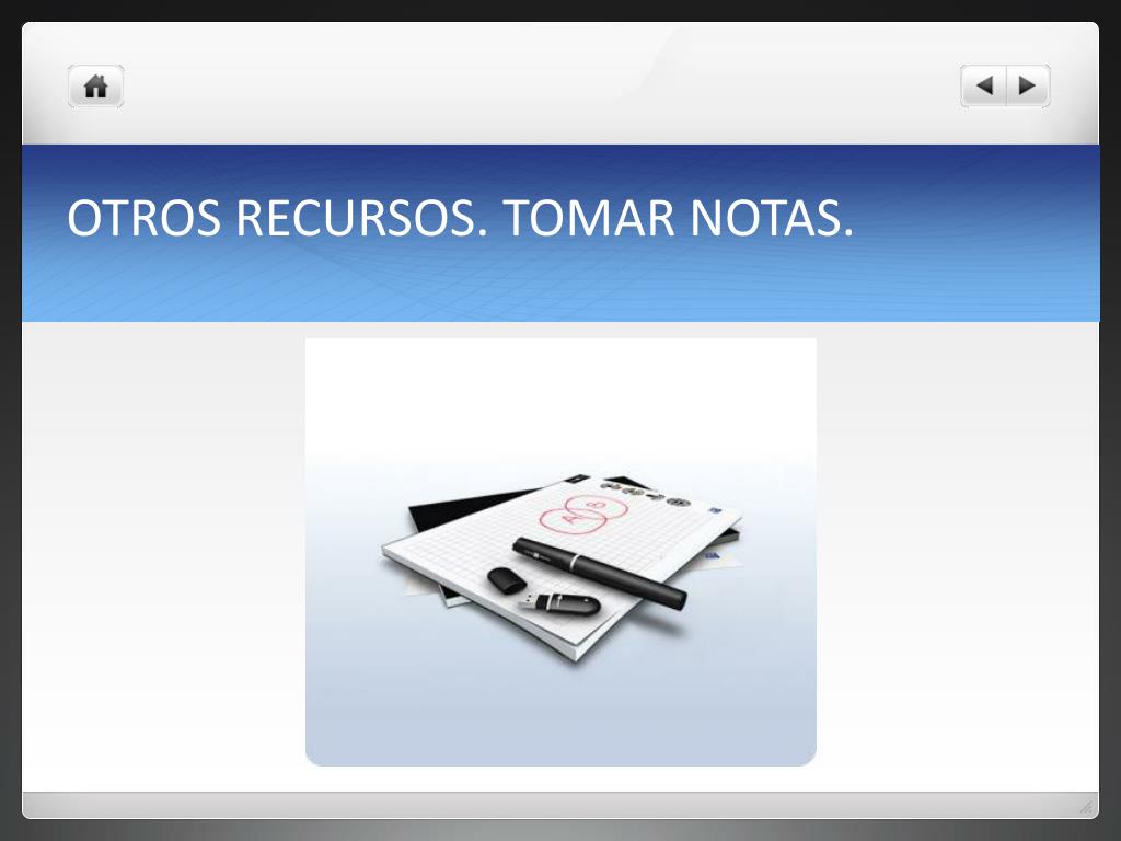 OTROS RECURSOS. TOMAR NOTAS. Las notas son una versión más modesta del diario, y limitada a una tarea específica. A menudo se nos ocurren ideas que no podemos escribir: viajando en autobús, paseando, antes de dormir. Si no las anotamos rápidamente corremos el riesgo de olvidarlas y después, cuando nos sentemos a escribir, no las recordaremos.