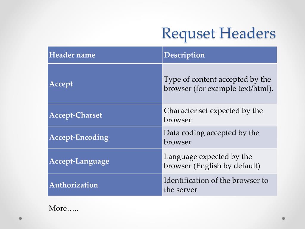HTTP Request • A request Line: method + URL + protocol version(For example: GET www.fit.eduHTTP/1.1) • Request Header Field • Body of Request