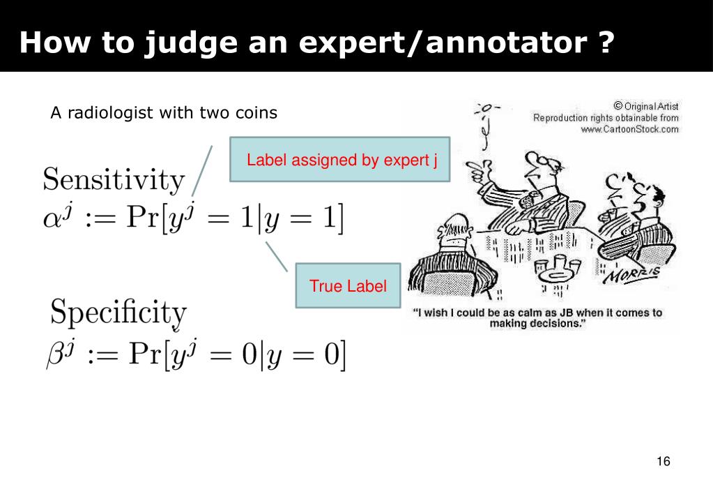 How to judge an expert/annotator ? A radiologist with two coins Label assigned by expert j True Label