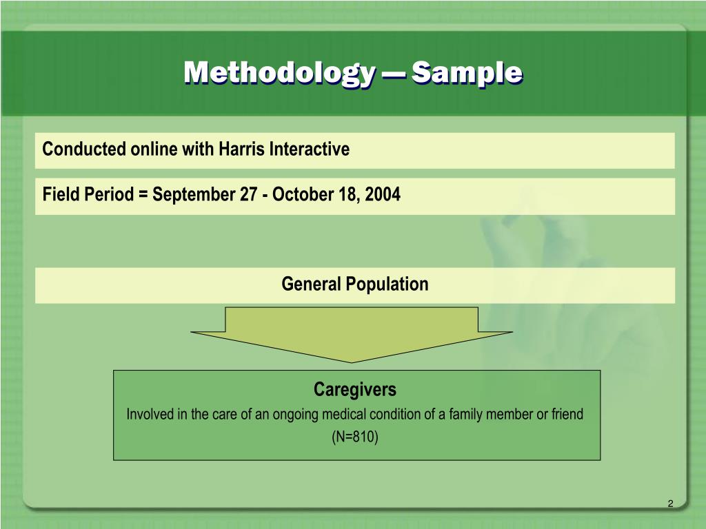 Methodology — Sample Conducted online with Harris Interactive Field Period = September 27 - October 18, 2004 General Population Caregivers Involved in the care of an ongoing medical condition of a family member or friend (N=810)