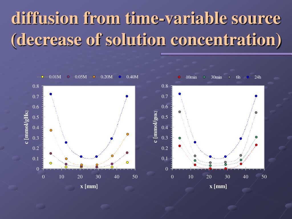 why study diffusion of metal ions in humic gels? • HA form very easily complexes with ions of transition metals • rate of interaction in sol >> rate of interaction in solid • strongly diffusion-effected interaction with solid HA • diffusion effect in heterogenous system