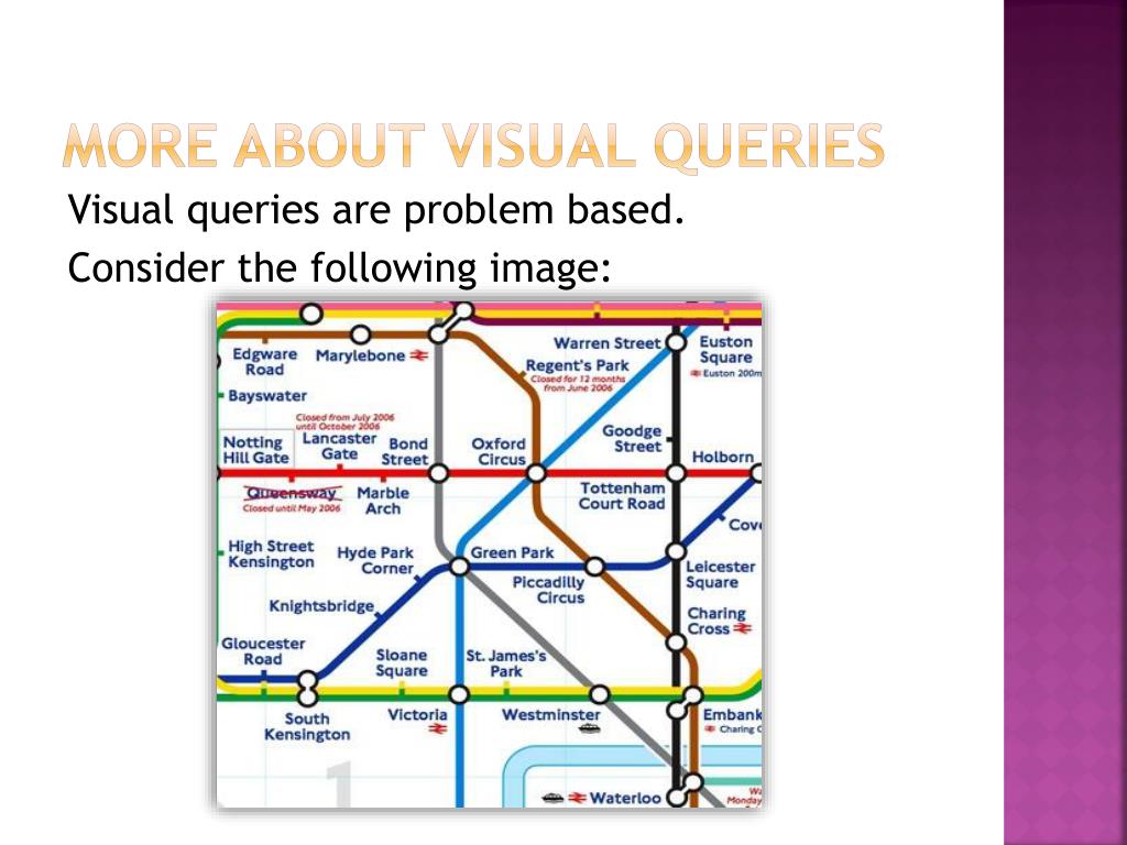 More about visual queries Visual queries are problem based. Finally, consider this image: