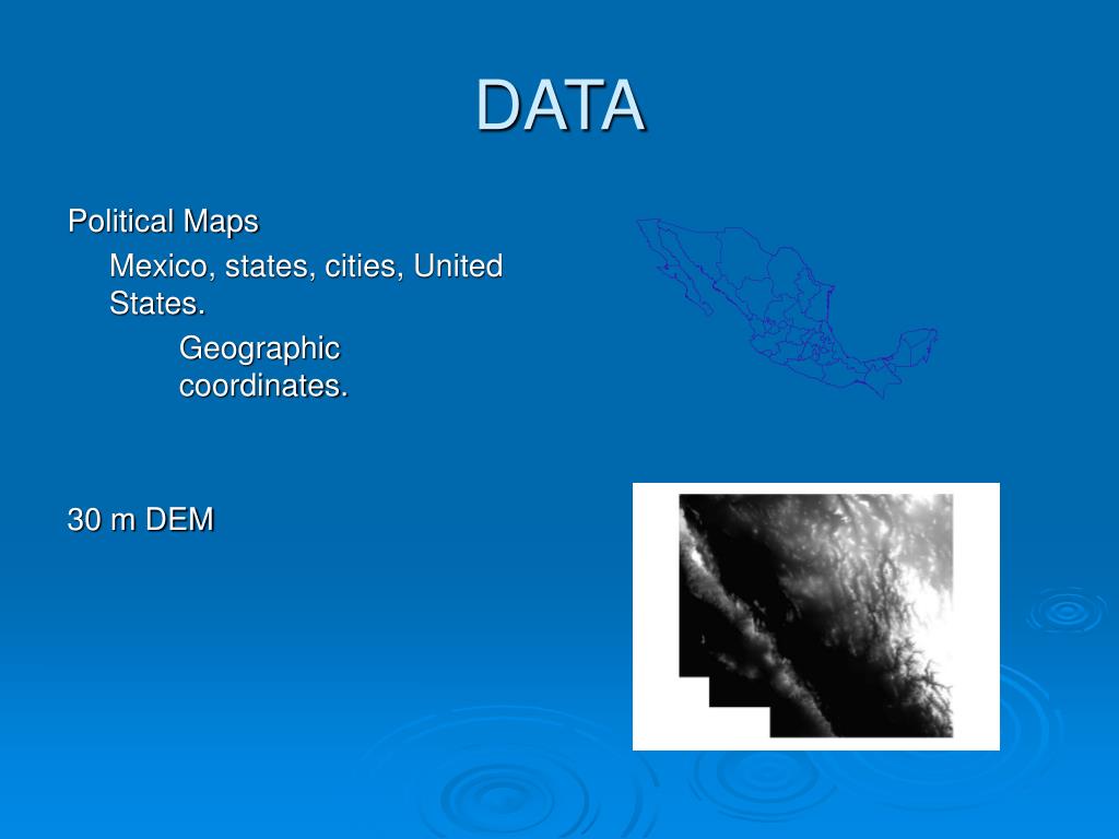 DATA Political Maps Mexico, states, cities, United States. Geographic coordinates. 30 m DEM