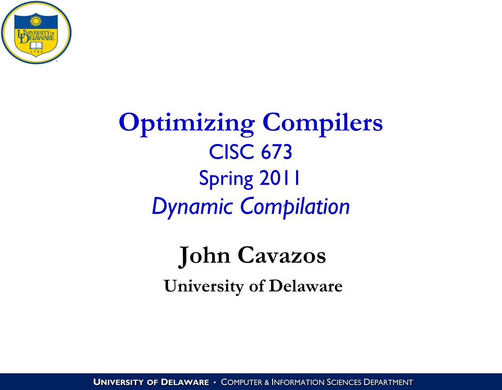 Optimizing CompilersCISC 673Spring 2011Dynamic Compilation John Cavazos University of Delaware