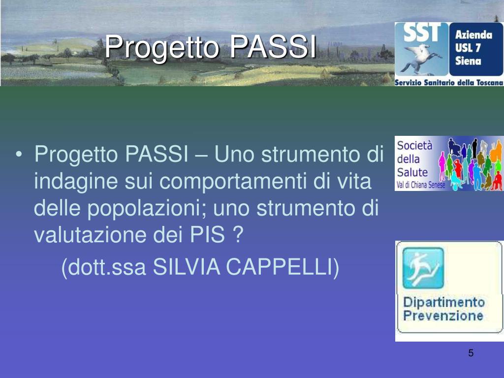 Progetto PASSI • Progetto PASSI – Uno strumento di indagine sui comportamenti di vita delle popolazioni; uno strumento di valutazione dei PIS ? (dott.ssa SILVIA CAPPELLI)