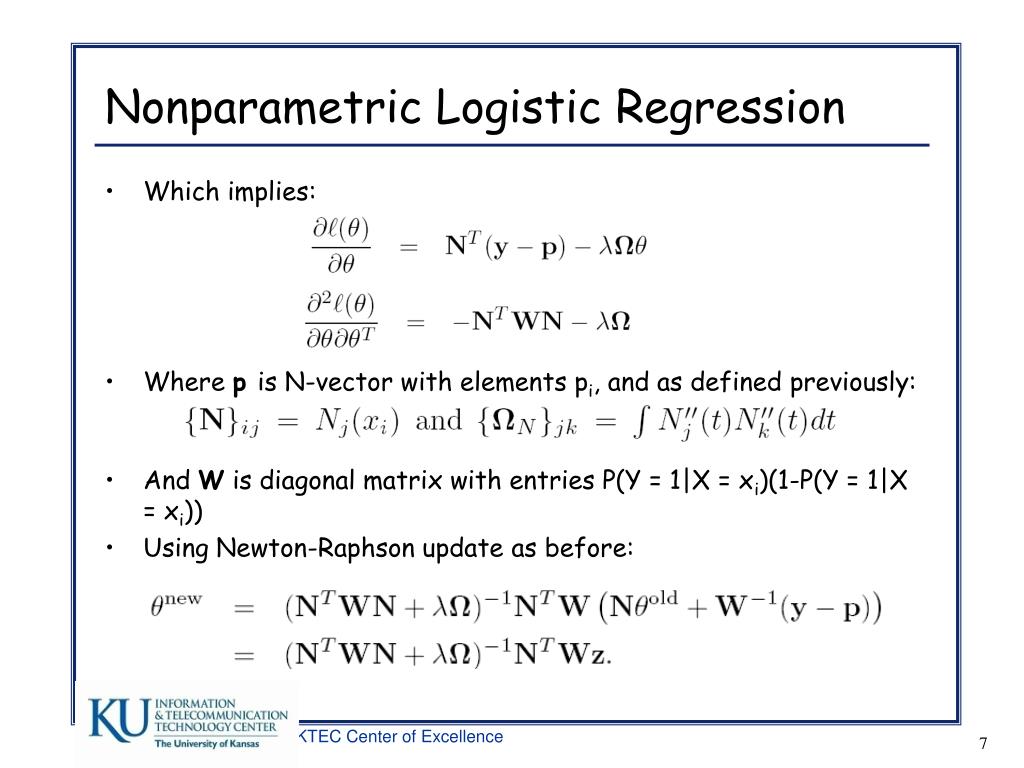 Basis Expansions and Regularization Continued From Elements of Statistical Learning. (CH. 5 Part 2) Speaker: Brian Quanz ( bquanz@ittc.ku.edu ) 7/3/2008. Overview. Nonparametric Logistic Regression Multidimensional Splines Regularization and Reproducing Kernel Hilbert Spaces