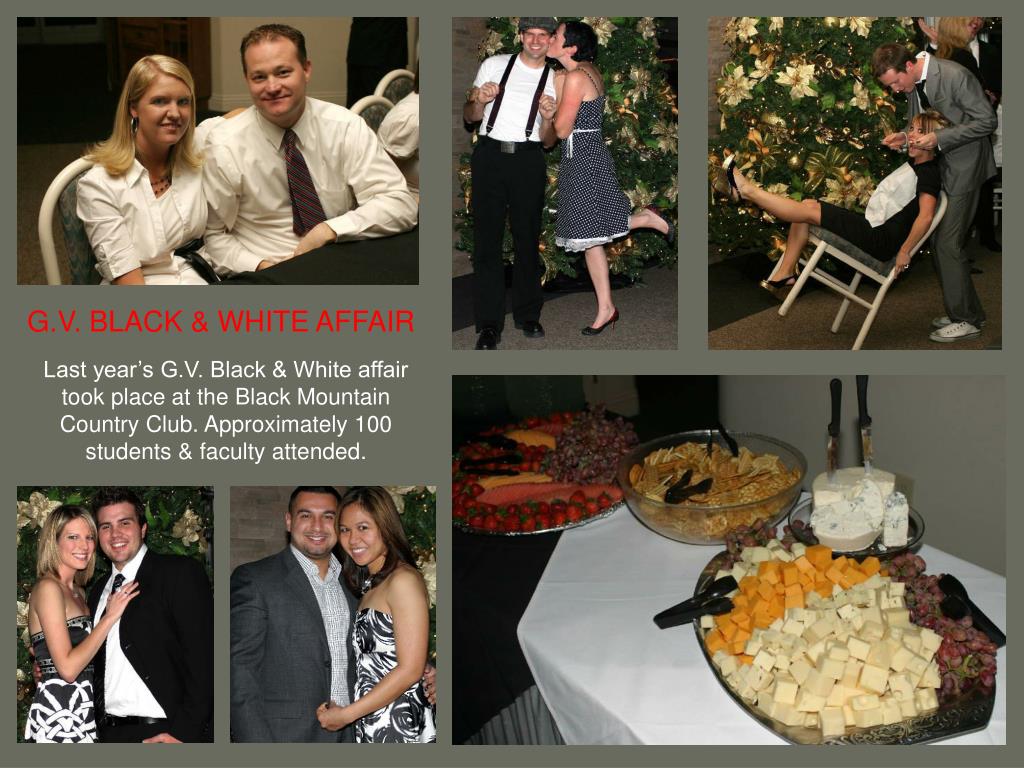 G.V. BLACK & WHITE AFFAIR Last year’s G.V. Black & White affair took place at the Black Mountain Country Club. Approximately 100 students & faculty attended.