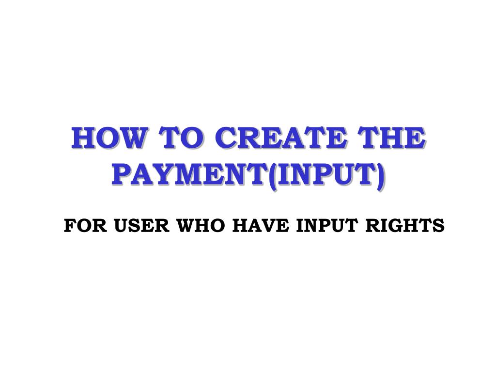 HOW TO CREATE THE PAYMENT(INPUT) FOR USER WHO HAVE INPUT RIGHTS
