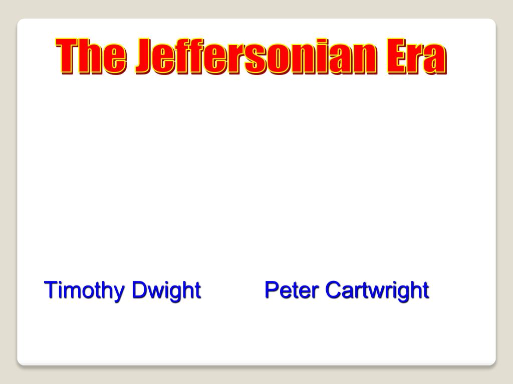 The Jeffersonian Era Timothy Dwight Peter Cartwright