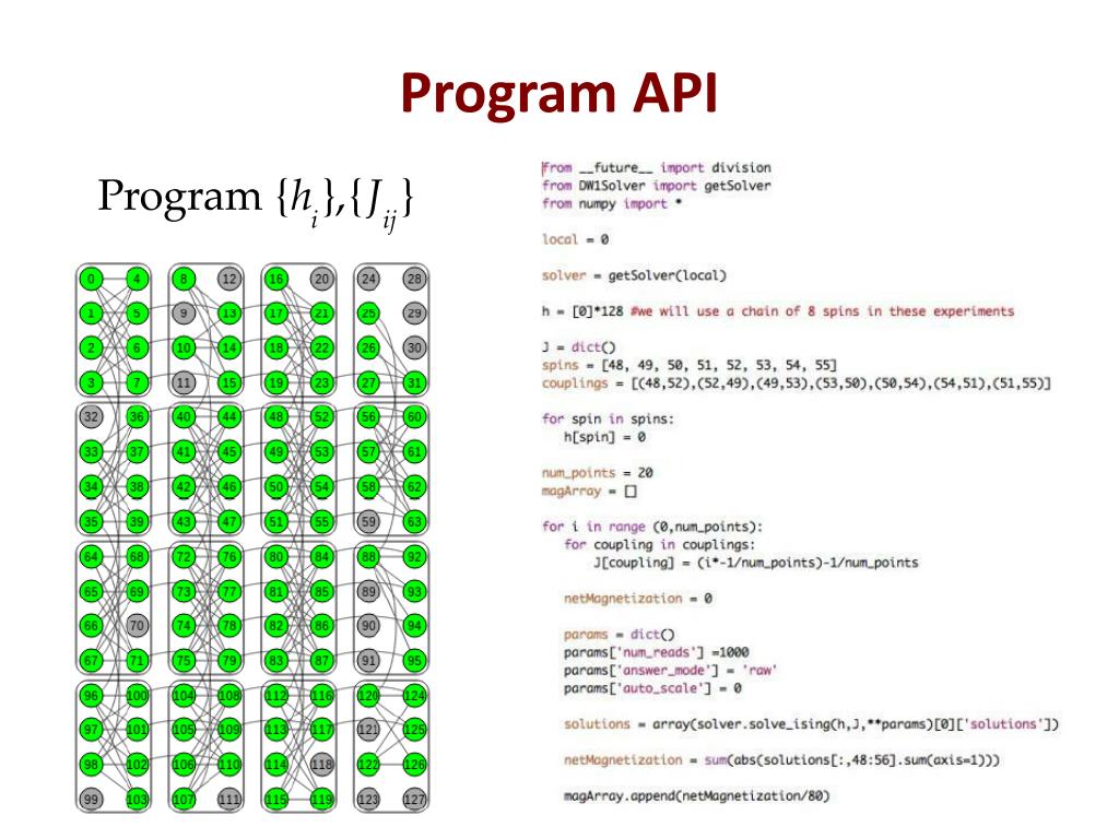 Quantum Annealing We want to find the ground state of an Ising Hamiltonian: Instead of “temperature” fluctuations, we use quantum fluctuations a transverse field Slowly remove the transverse field to stay on the ground state: