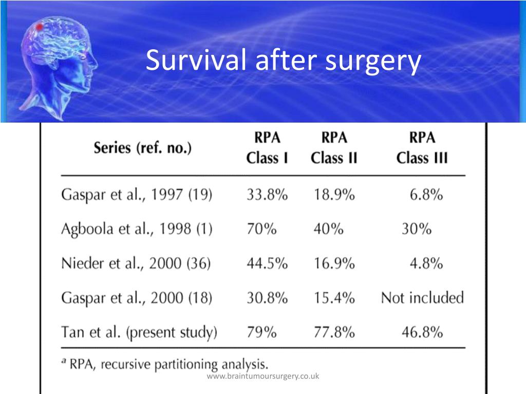 Survival after surgery www.braintumoursurgery.co.uk www.braintumoursurgery.co.uk