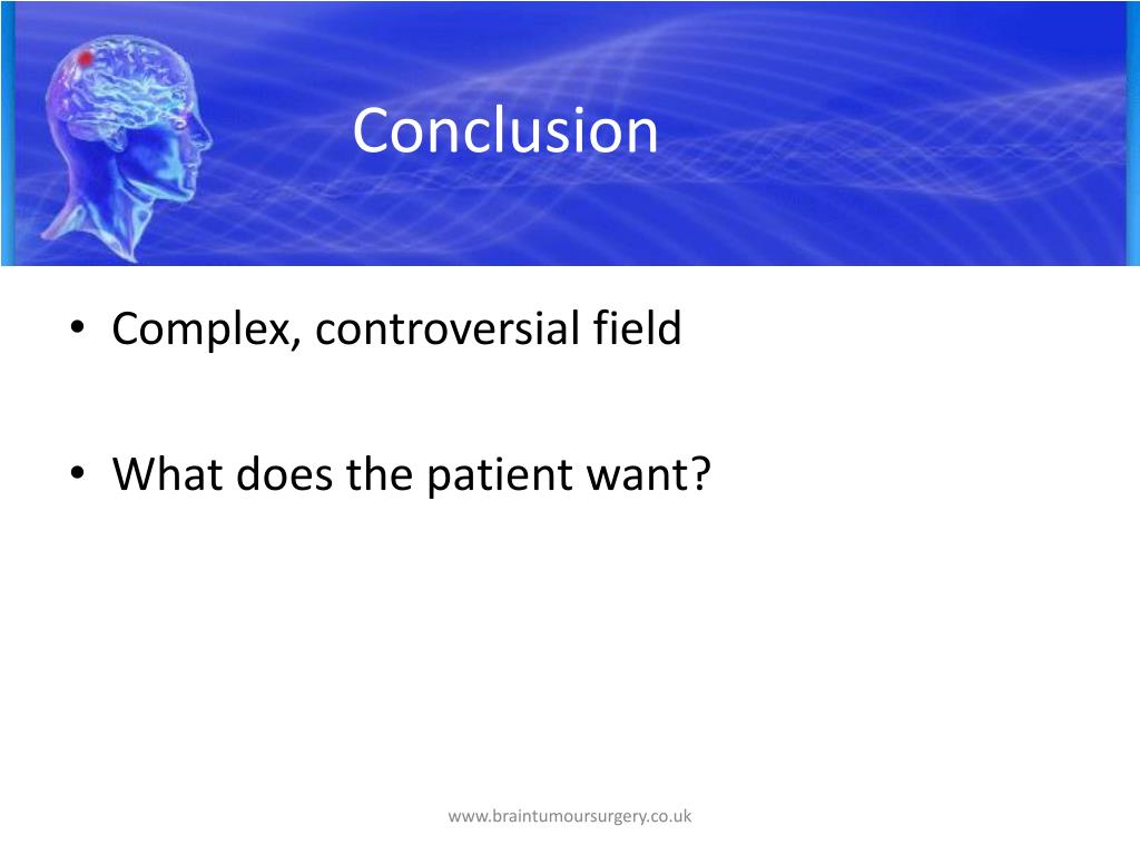 Conclusion • Complex, controversial field • What does the patient want? www.braintumoursurgery.co.uk