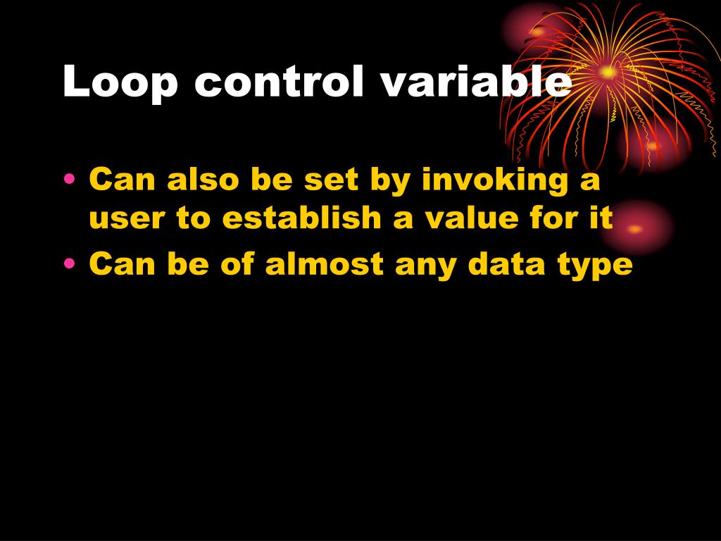 Loop control variable • Can also be set by invoking a user to establish a value for it • Can be of almost any data type