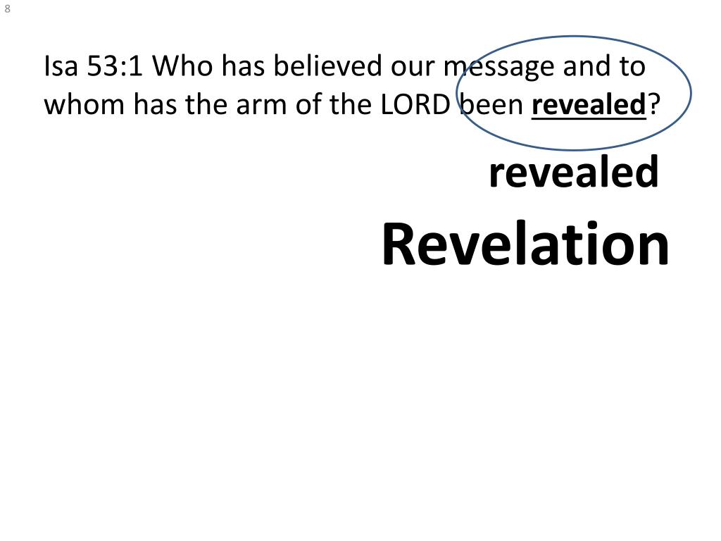 Isa 53:1 Who has believed our message and to whom has the arm of the LORD been revealed? revealed Revelation