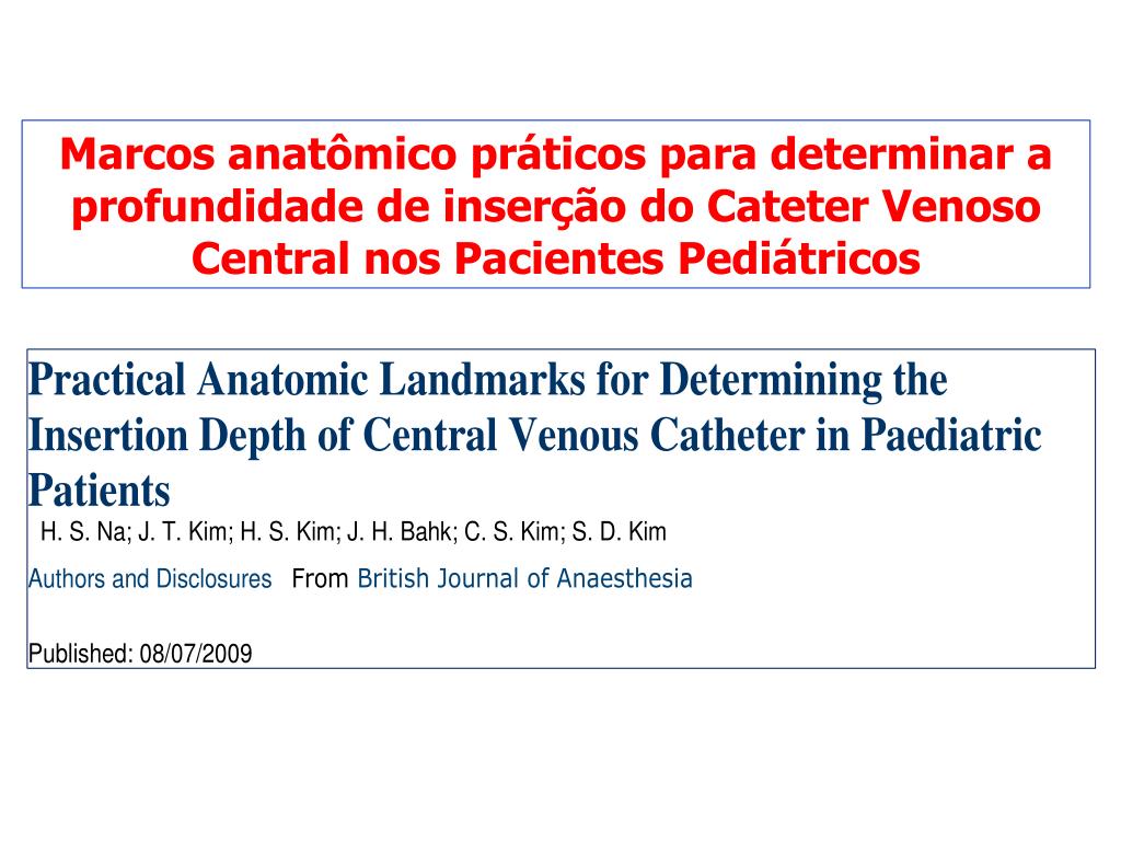 Marcos anatômico práticos para determinar a profundidade de inserção do CateterVenoso Central nos Pacientes Pediátricos