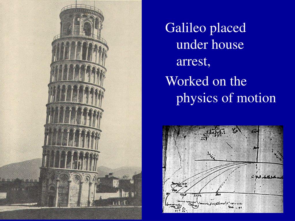 Galileo placed under house arrest, Worked on the physics of motion