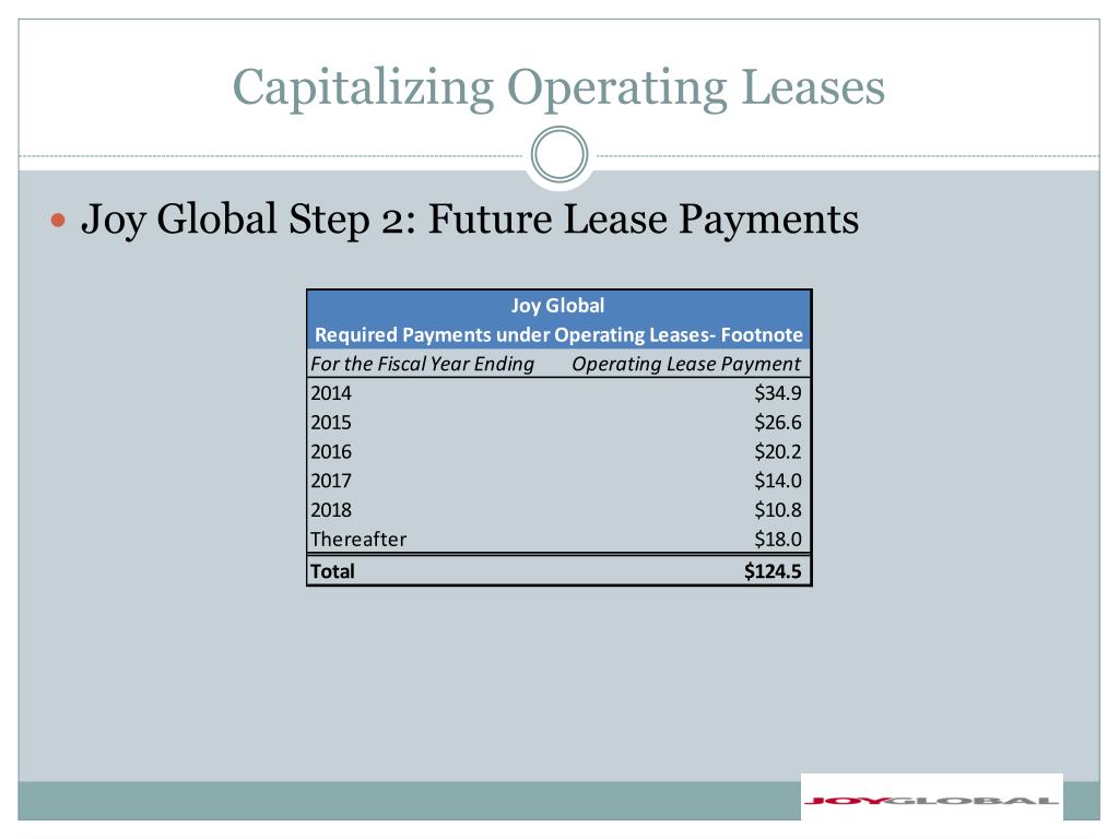 Capitalizing Operating Leases • Joy Global Step 2: Future Lease Payments