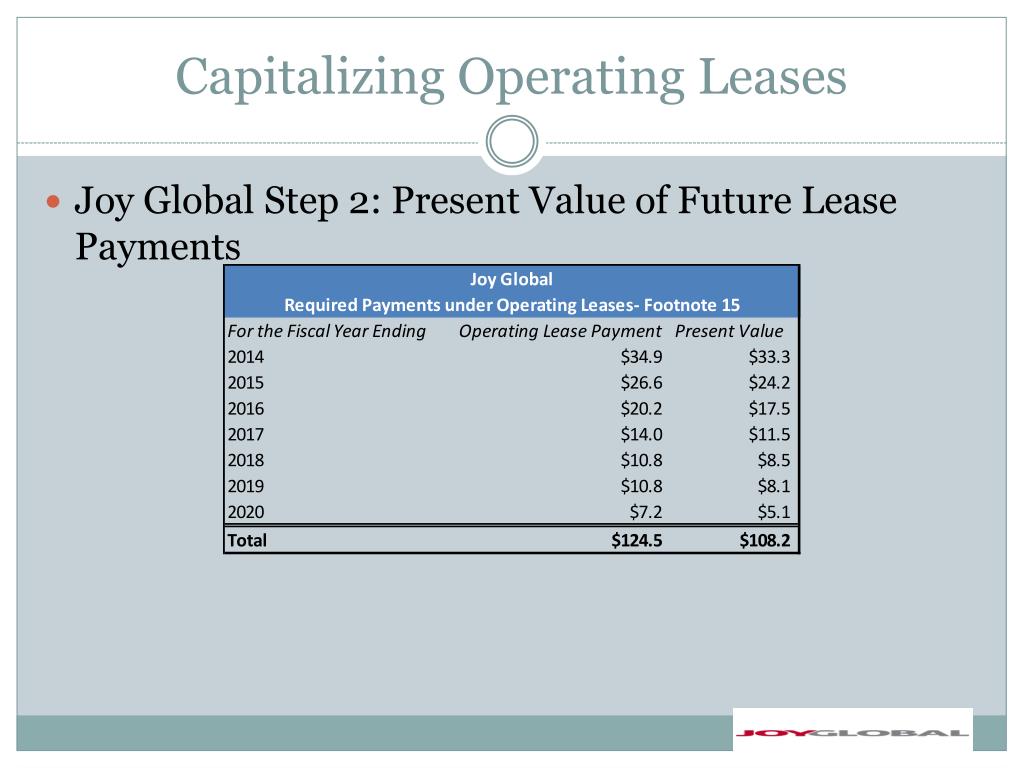 Capitalizing Operating Leases Joy Global Step 2: Present Value of Future Lease Payments