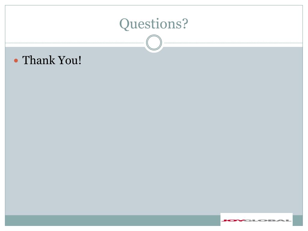 Joy Global Background • Manufactures and services mining equipment • Focus on: Coal, Copper, Iron Ore, Oil Sands, and Gold • Revenue split between • Surface Mining Equipment • Underground Mining Machinery