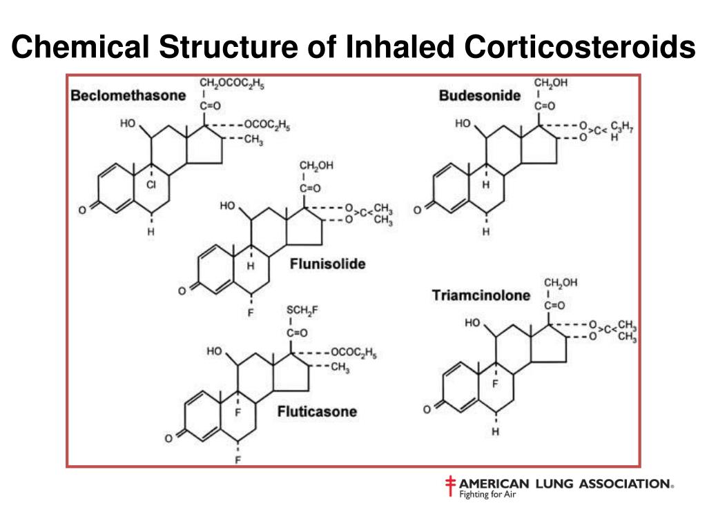 Inhaled Corticosteroids Possible Dose-Dependent side effects: • Oral candidiasis (thrush) • Dysphonia • Reflex cough and bronchospasm • Slowed linear growth velocity • Decreases in bone mineral density • Dermal thinning and skin bruising • Ocular effects: glaucoma, cataracts