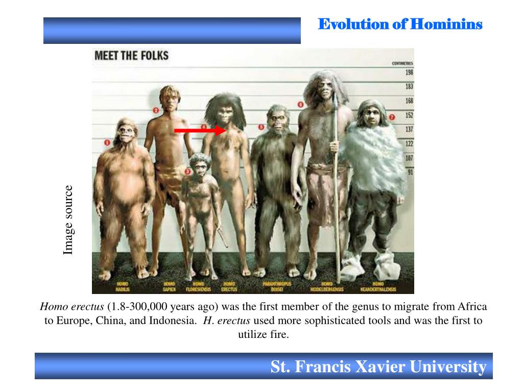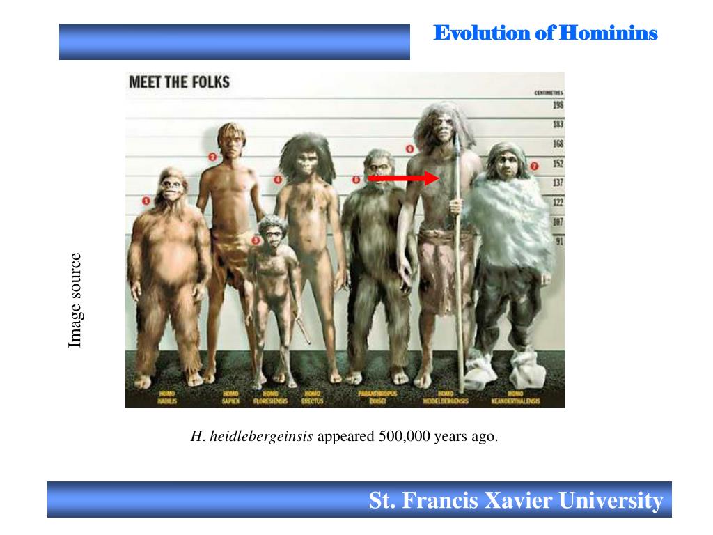 Evolution of Hominins Image source H. heidlebergeinsis appeared 500,000 years ago. St. Francis Xavier University