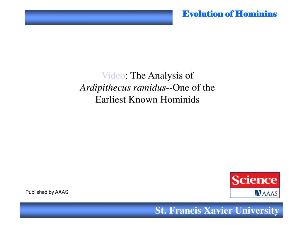 Evolution of Hominins Video: The Analysis of Ardipithecus ramidus--One of the Earliest Known Hominids Published by AAAS St. Francis Xavier University
