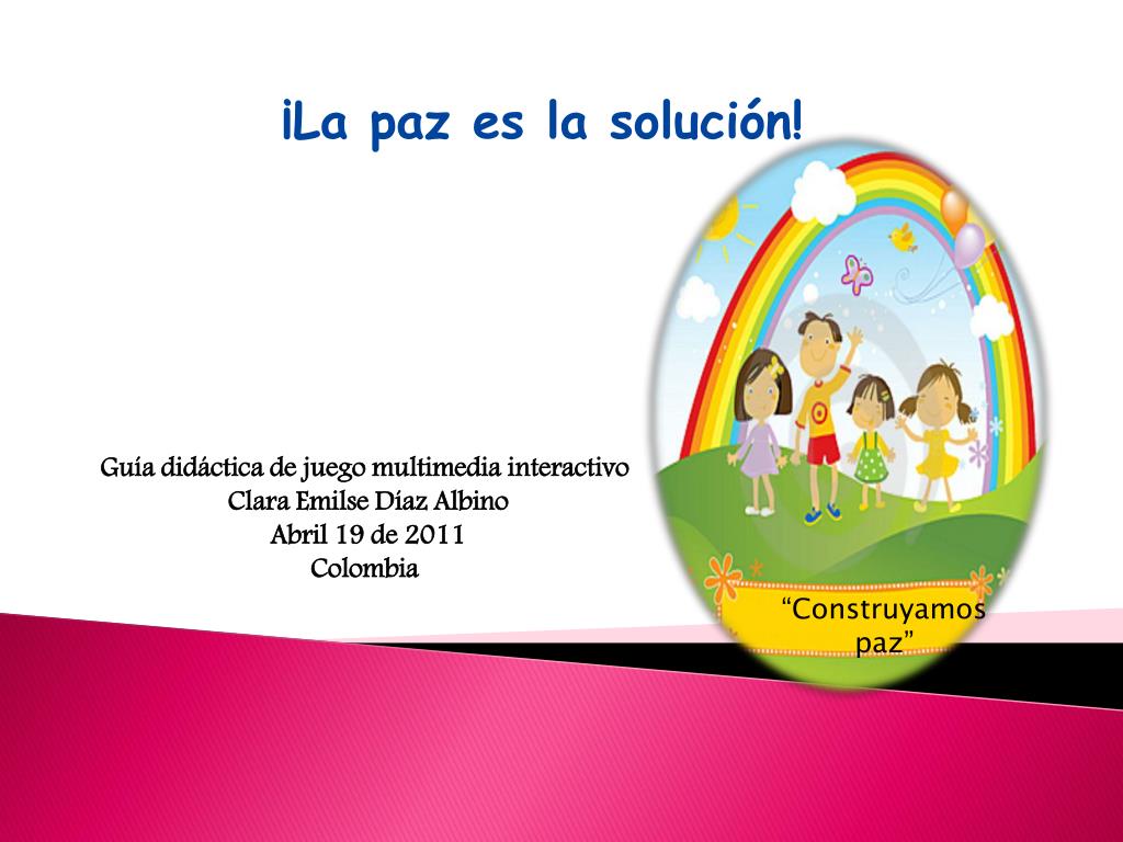 ¡La paz es la solución! Guía didáctica de juego multimedia interactivo Clara Emilse Díaz Albino Abril 19 de 2011 Colombia “Construyamos paz”
